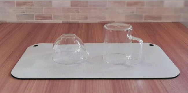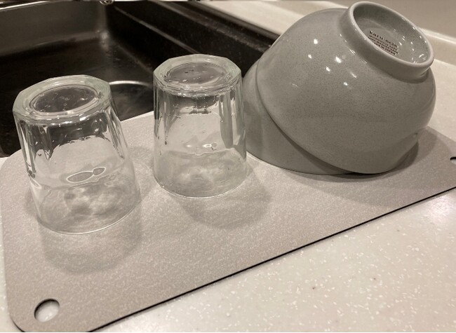 洗い終わった食器を、置きっぱなしで乾かすのに便利な吸水マット。使わないときは収納できるので、洗う食器の量が少ない方や、キッチンスペースが狭い方に特におすすめのアイテムです。また、水切りラックに収まらないときにも活躍いたします。