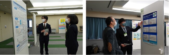 その後、学生によるポスター発表を行いました。教員や講師からの質問に一生懸命答える学生の姿や学生同士で理解を深めあう姿などが見られ、学生からは「着眼点がそれぞれ異なっており、新たな視点から考えるきっかけを得られた」との意見がありました。また、研究所・大学により行われた活動紹介についても、学生の進路選択の参考になることが期待できる内容となりました。