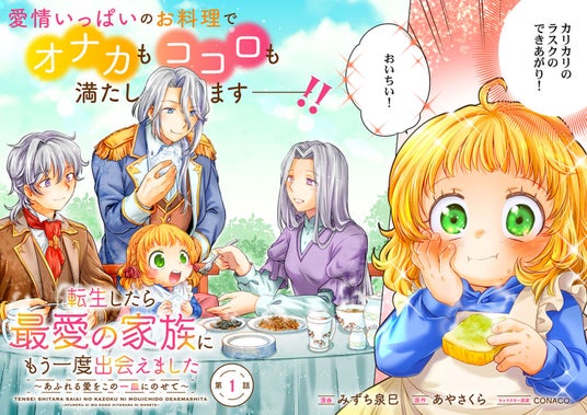 『転生したら最愛の家族にもう一度出会えました ~あふれる愛をこの一皿にのせて~』(漫画:みずち泉巳 原作:あやさくら キャラクター原案:CONACO)の連載が、コミック アース・スター(https://comic-earthstar.com/) にて、本日7月18日(木)18時より開始となりました。