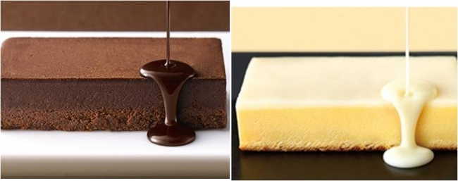 下記左はスポンジに、チョコレートソースをたっぷりしみ込ませた濃厚チョコレートケーキ「青山散歩ショコラ」。