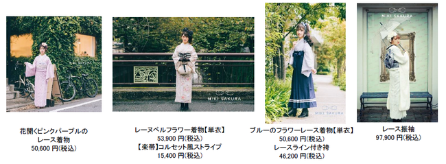 「MIKI SAKURA」では、美しいkaoriに包まれた凛とした女性をコンセプトに身に着けるモノをプロデュースし、レース着物・帯など、女性なら心ときめくアイテムで溢れるブランドです。