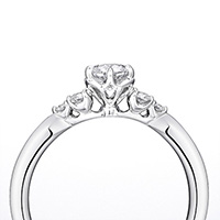 アームを絞り、メレダイヤモンドの大きさと配置で視線を中心に集めることにより、センターダイヤモンドをより際立たせて見せる効果があります。