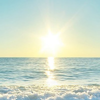 太陽が昇り眩しく照らし出されるエーゲ海の美しい情景をイメージしています。