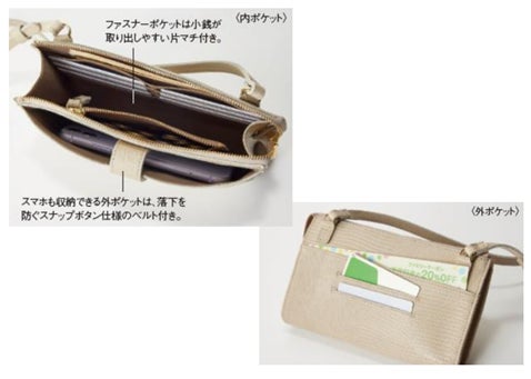 マチもしっかりあるので、リップ等メイクアイテムやハンドタオルも収納でき、ポシェットとしても機能的。旅先はもちろん、ちょっとした外出時も身軽にお出かけが可能。