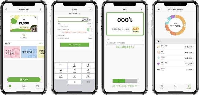 「デジタル商品券発行スキーム」採用第1号事例となる「おおいたPay」は、大分県大分市のプレミアム付商品券事業のデジタル版として提供される電子商品券です。大分県内在住者の方を対象として、購入額に30%のプレミアムが付く商品券を販売することで、市民等の消費喚起と市内事業者の売上拡大を図ります※1。ユーザーは「おおいたPay」アプリをダウンロードして現金をチャージすることで、大分市内の「おおいたPay」加盟店でキャッシュレス決済が行えるようになります。提供開始時点では県内の老舗百貨店を含む飲食店や物販店など約2,000店舗で利用できる予定です。株式会社セブン銀行(本社:東京都千代田区、代表取締役社長:舟竹 泰昭、以下「セブン銀行」)とATM提携を行っており、全国のセブン銀行ATMで原則24時間365日、スマートフォンでかんたんに現金チャージが可能です。