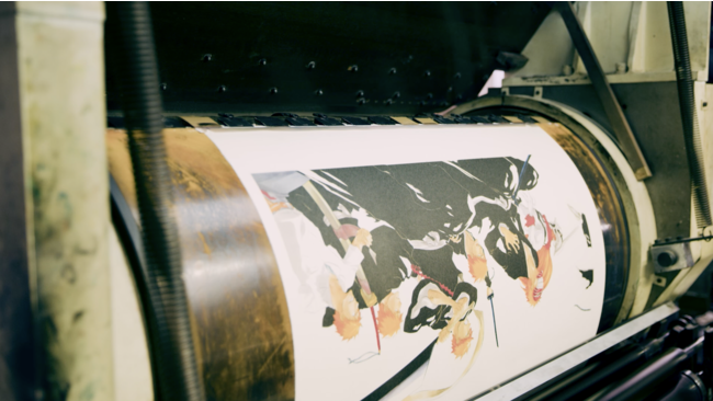 この和紙に、「コロタイプ印刷」で作品をプリント。現在、この大判カラープリントが行える会社は世界で1社のみ。これまで国宝や重要文化財の複製制作などを主に行ってきた京都の工房で、マンガの鮮やかな色彩と繊細な線のタッチの再現を試みました。