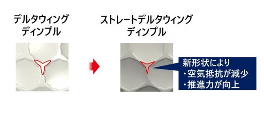 ディンプル形状の見直しを行い、空気抵抗が減少し推進力が向上する新規形状を採用。直進性を高め、風に強い弾道を追求しました。