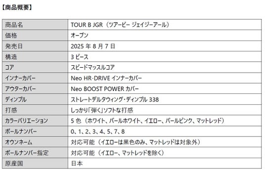 ブリヂストンスポーツ株式会社は、さらなる飛びを求めるアマチュアゴルファーのために進化したゴルフボール『TOUR B JGR』を2025年8月7日に発売します。価格はオープンです。