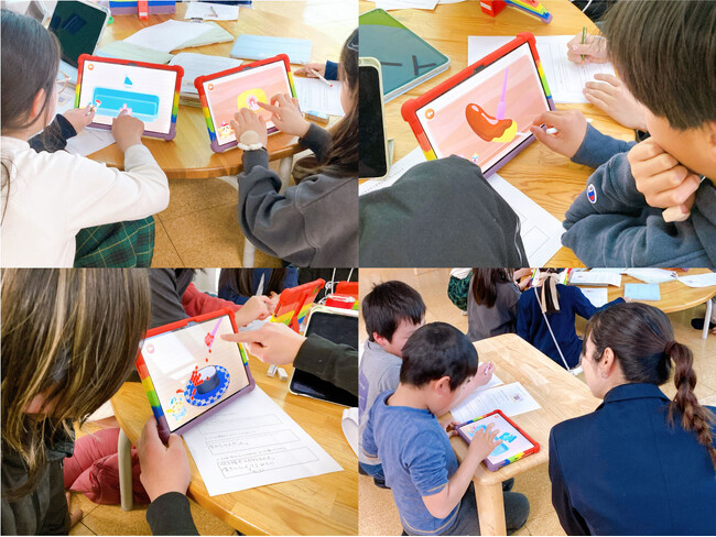 「効果音が面白くて何回もやりたい」「実際に作っているみたいでお腹がすく」「カットする向きを自由に変えてみたい」「トッピングの量を調節してみたい」などいろいろな感想を伝えあって楽しんでいる様子が伺えました。