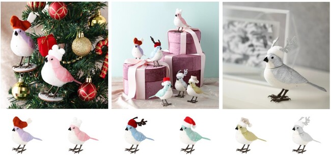 クリスマス限定バージョンのミュージックバードが今年も登場!人感センサーが反応して鳥がさえずります。かわいいかぶり物をかぶったスペシャル感たっぷりのデザインが愛らしいアイテムです。クリスマスにちなんだ歌を6曲収録しました。