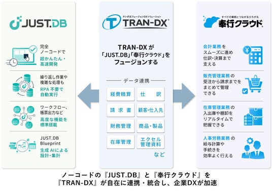 1. 『TRAN-DX』が『JUST.DB』×『奉行クラウド』の連携・運用を一気通貫で支援