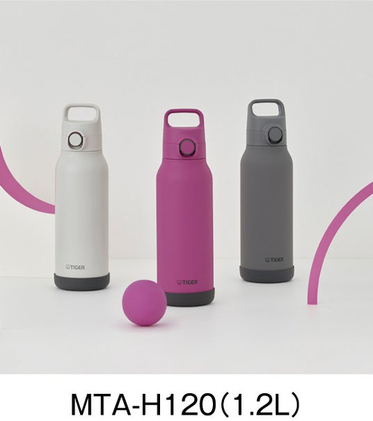 この度、新発売となる「真空断熱ボトル(保冷専用)MTA-H100/H120/H150」は、「真空断熱ボトル(保冷専用)MTA-B型」の保冷力の高さ、持ち運びに便利なハンドル付ワンプッシュタイプ、スタイリッシュさはそのままに、さらに使いやすく進化。当社の1.0L以上の大容量ボトルで初めてパッキン一体型せん「らくらくキャップ」を搭載し、らくにお手入れしていただけます。