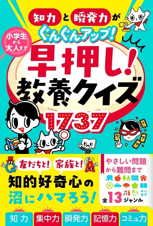 株式会社西東社(所在地:東京都文京区、代表取締役:若松和紀)は、書籍『知力と瞬発力がぐんぐんアップ! 小学生から大人まで 早押し!教養クイズ1737』を、2025年6月20日(金)に発売いたします。