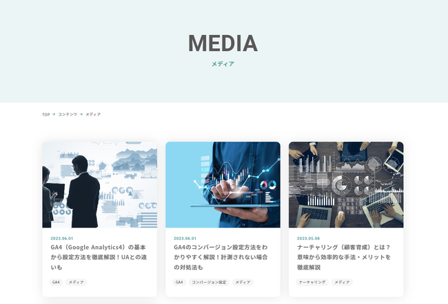 この度、デジタル・データ活用という専門性の高い領域を、中小・ベンチャー企業にとってより分かりやすく身近に感じていただくためにホームページをフルリニューアルいたしました。DX時代にふさわしいブランディング展開およびPR展開を遂行していくための操作性と更新性等の自由度を大幅に向上させています。新しいコンテンツとして、セールス・マーケティング領域におけるデジタル・データ活用に関連する各種ツールの比較や、GoogleAnalytics4、Googlecloudの活用方法など、より実践的内容をご紹介していくメディアコーナーを新設しています。