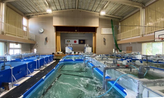 滋賀県甲賀市の廃校を活用したアクアステージ社の養殖場