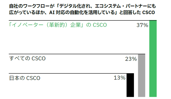 イノベーター企業はワークフローの自動化・統合化を自社およびエコシステム全体に広げているが、日本企業の取り組みは遅れている