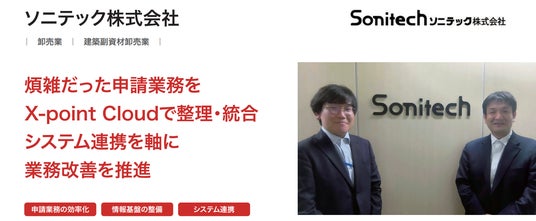 ワークフローシステムのリーディングカンパニーである株式会社エイトレッド(本社:東京都渋谷区、代表取締役社長:岡本康広 以下、エイトレッド)が提供するクラウド型ワークフロー「X-point Cloud(エクスポイントクラウド)」をご利用いただいている、ソニテック株式会社(所在地:東京都中央区、代表取締役社長:和田 翼)の導入事例を公開いたしました。