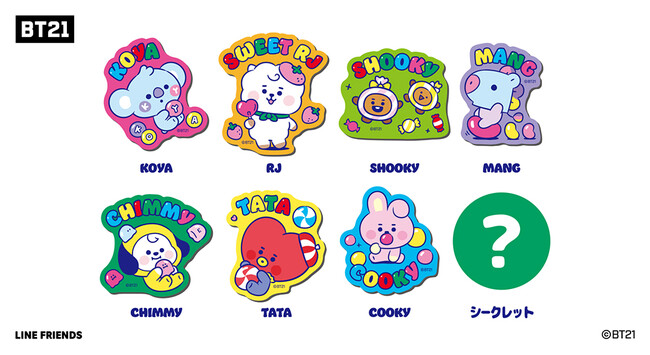 『BT21』の対象景品が展開された当社アミューズメント施設のプライズゲーム用景品に500円投入する毎に、「マグネットシート」を1枚プレゼントいたします。ここでしかもらえないキャラクターのかわいいフォルムを活かしたダイカット形状のマグネットシートで、シークレットデザイン1種類を含む全8種類です。