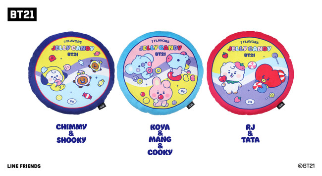 『BT21』の限定プライズ「ぬいぐるみ」、「マスコットぬいぐるみ」、「クッション」、「キューブポーチ」の4アイテム24種類を展開します。ジェリービーンズやキャンディなどのお菓子をテーマにしたポップでキュートなデザインです。また、当アミューズメント施設の『BT21』の対象景品が展開されたプライズゲーム用景品に500円投入する毎に、「マグネットシート」を1枚プレゼントいたします。