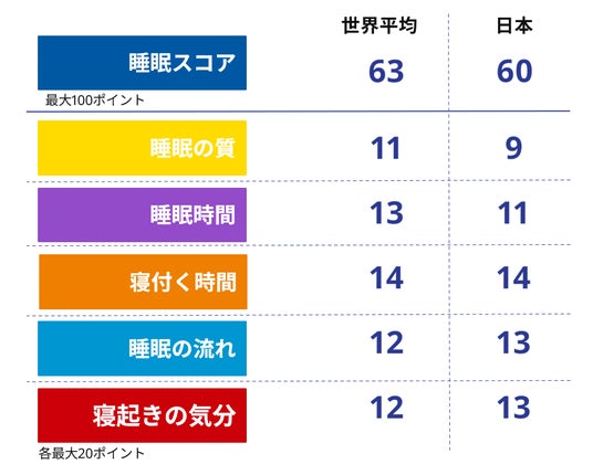 - 睡眠の質(日本のスコアは9pt)