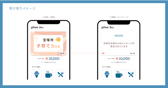 eギフトプラットフォーム事業(※1)を展開する株式会社ギフティ(本社:東京都品川区/代表取締役:太田 睦、鈴木 達哉/以下、ギフティ)は、デジタルギフトを活用した法人向けサービス「giftee for Business」(※2)を兵庫県宝塚市(※3)が2023年1月15日 (日)~3月15日(水)の期間、18歳以下の子どもを持つ世帯に向けて実施する「宝塚市子育て世帯応援給付事業」に採択いただきました。これに伴い、対象世帯へ給付されるデジタルギフト「宝塚市子育てBox」を提供しておりますのでお知らせいたします。同Boxは「giftee for Business」の主力プロダクト「giftee Box(R)」(※4)を宝塚市オリジナル仕様にカスタマイズしたものであり、「giftee for Business」サービスとして、自治体向けにカスタマイズしたデジタルギフトを提供するのは今回が初となります。なお、本事業は日本旅行ビジネスソリューションズ株式会社(本社:大阪府大阪市/代表取締役社長:高橋 秀実)フロントの下、ギフティ、株式会社ニッセン(本社:京都府京都市/代表取締役社長:羽渕 淳)との連携で行っております。