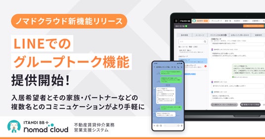 テクノロジーで不動産の賃貸取引をなめらかにするイタンジ株式会社(以下「当社」)は、2025年6月5日より賃貸仲介業務の営業支援システム「ノマドクラウド」に、「LINE(※1)でのグループトーク」に対応した新機能(以下「本機能」)を追加しました。
