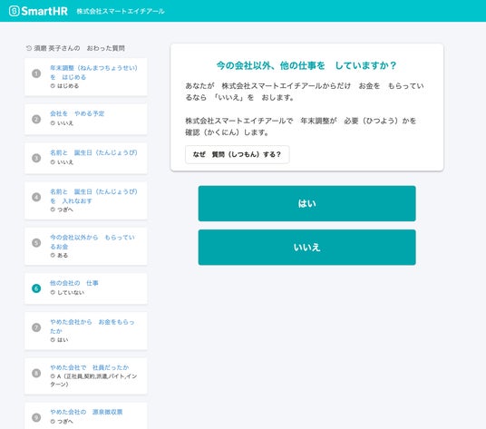 株式会社SmartHR(本社:東京都港区、代表取締役CEO:芹澤 雅人、以下「当社」)は、当社が運営するクラウド人事労務ソフト「SmartHR(スマートエイチアール)」上にて提供する「年末調整機能」において、「やさしい日本語」切り替え機能を2024年10月上旬より提供いたします。