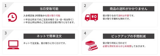 - ピックアップの手間削減:受け取り時刻にあわせて購入商品を予め用意しておきます