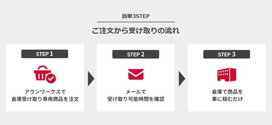お客様は好きな場所でスマートフォンやパソコンからアウンワークス(https://www.aunworks.jp/)で沖縄倉庫受け取り対応商品を購入できます。購入した商品を担当者が確認し準備するとともに、受け取り可能時間をメールにてお伝えしますので、時間になりましたら那覇市の沖縄倉庫にて受け取りが可能になります。