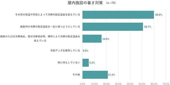 まず、暑さ対策として気をつけている事について屋内施設に尋ねた結果がこちら。