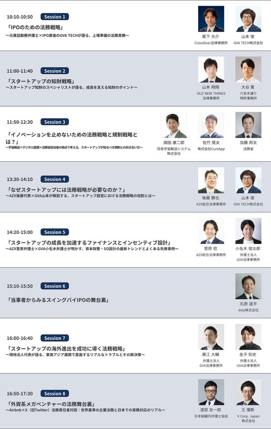 本カンファレンスでは、スタートアップ法務を内部・外部から支えてきた業界の第一人者をお招きし、私自身の実体験も踏まえながら、企業成長を加速させるための法務戦略を深掘りします。すべての成長を目指すスタートアップにとって、法務を強力な成長エンジンに変えるきっかけとなれば幸いです。