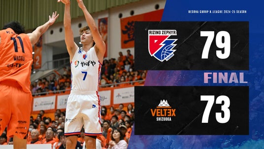 2024年11月16日(土)に開催した、りそなグループB.LEAGUE 2024-25シーズン【ベルテックス静岡vs.ライジングゼファーフクオカ】の結果は、 “静岡73-79福岡”で福岡の勝利となりましたことをお知らせいたします。