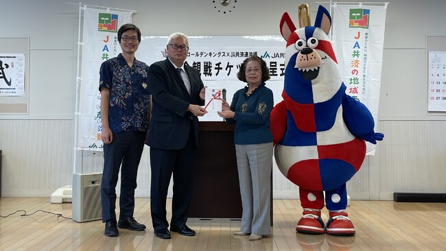 ご招待するにあたり、3月29日(水)にチケットの贈呈式を実施し、JA共済連沖縄本部長 兼城勝氏、沖縄県母子寡婦福祉連合会会長 与那嶺 清子氏にもご参加いただきました。