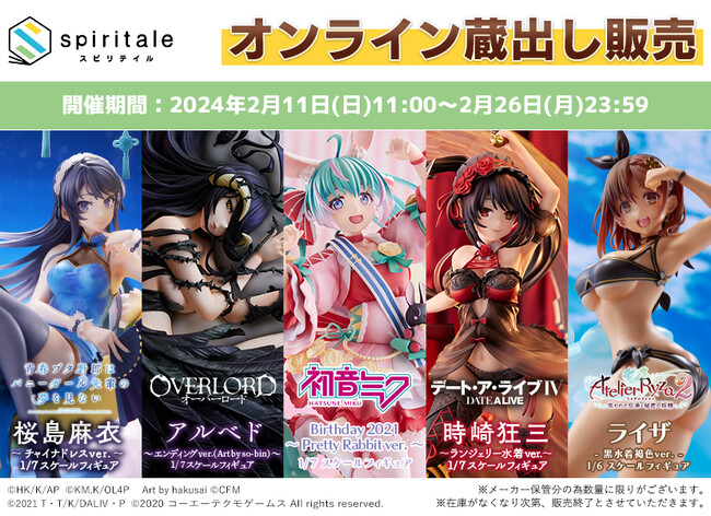株式会社タイトー(本社:東京都新宿区、以下タイトー)の、高品質フィギュアブランド「spiritale(スピリテイル)」は、2024年2月11日(日)に千葉・幕張メッセで開催する世界最大級の造形・フィギュアの祭典『ワンダーフェスティバル2024[冬]』(以降、ワンフェス)に出展いたします。