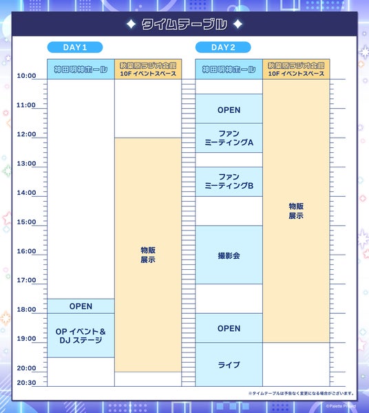 ※予定は変更する可能性がございます。あらかじめご了承くださいませ。