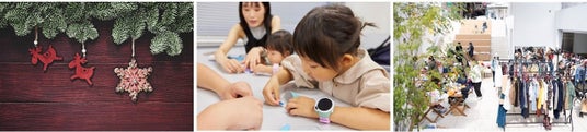 左)オーナメントイメージ※完成品ではありません 中)Re:bonisものづくり体験イメージ 右)服の交換会イメージ