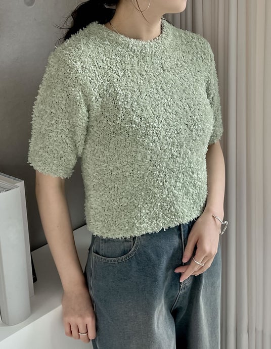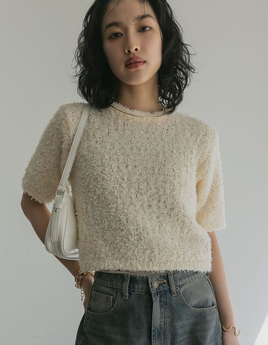 立体的なリボンヤーンが愛らしいコンパクトプルオーバー