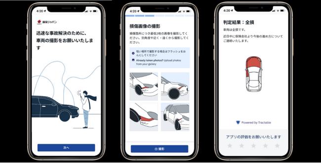 損保ジャパンは、自動車事故から保険金支払いまでの過程を大幅に改善した。技術アジャスターによる長時間の査定プロセスを、画像認識AIを活用することで短縮し、エフォートレスな顧客体験を提供した。このAIは技術アジャスターと同程度の精度で「全損」の判断を行い、かつて1週間かかっていたプロセスを高速化し、保険金の即日支払いを実現した。この画像認識AIはロンドン発のスタートアップである「Tractable」によって開発された。Tractableは2014年の創業以来、自動車事故や自然災害からの復旧という社会課題に取り組んでおり、損害保険ジャパンと共に本プロジェクトを推進してきた。