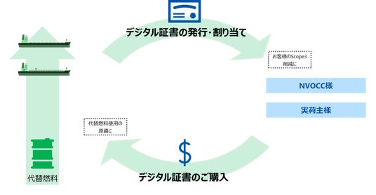 当社は、2024年2月に、アジア太平洋域の海運会社として初めて、オランダのスタートアップ企業123Carbon B.V.と協働して構築したプラットフォーム上で、代替燃料を使用した低炭素航海(註2)の環境属性をデジタル証書として取引可能な形としました(註3)。その後、当社グループが運航する船隊での代替燃料を使用した低炭素航海の実施から、デジタル証書を発行しお客様へ割り当てるまでのオペレーションを確実に実行できる体制を整えてきました。また、発行済みのデジタル証書について、NIPPON EXPRESSホールディングス株式会社、C.H. ROBINSON WORLDWIDE, INC.、商船三井ロジスティクス株式会社の大手NVOCC3社との取引を実行しました。これらをもって、本プログラムの立ち上げに至りました。