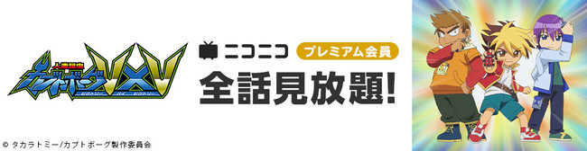 株式会社ドワンゴは、同社が運営する「ニコニコチャンネル」にて、2023年12月18日(月)~2024年1月31日(水)の期間限定で、TVアニメ『人造昆虫カブトボーグ V×V』(全52話)をニコニコプレミアム会員に向けて見放題で配信します。ニコニコプレミアム会員見放題配信開始に先駆けて、「ニコニコ生放送」では、2023年12月17日(日)19時より、本作の第1話~第12話の無料上映会を実施します。