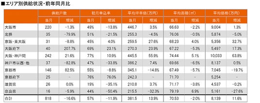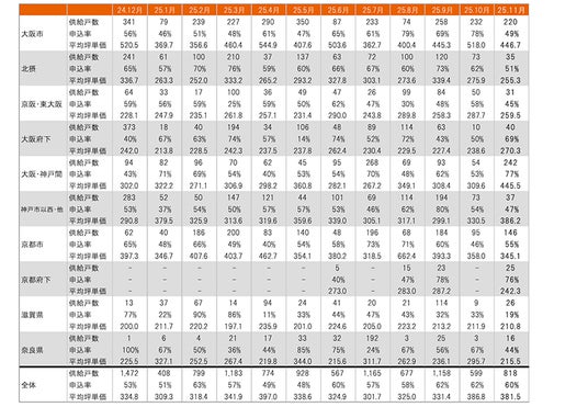 集計対象エリアは首都圏及び関西で、それぞれのエリア別相場情報、需給動向、着工件数等を集計しました。