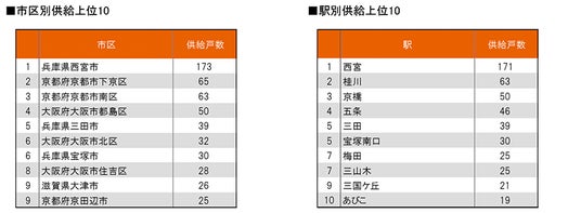また、市区別、駅別の供給ランキング等も算出しました。