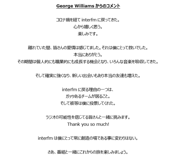 「RADIO. RADIO. With George Williams」毎週金曜日19:00から生放送!