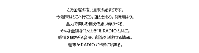 放送局 :インターエフエム(東京:89.7 MHz 横浜:76.5 MHz)http://www.interfm.co.jp/
