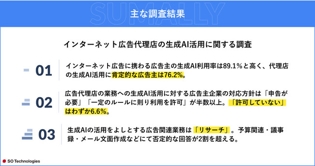 インターネット広告代理店の生成AI活用に関する調査 / SO Technologies