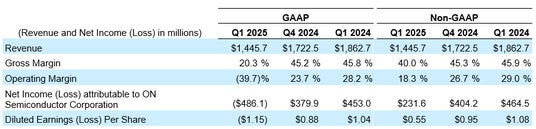 オンセミ(本社: 米国アリゾナ州スコッツデール、Nasdaq:ON)は、2025年第1四半期の決算結果を発表しました。主なハイライトは以下のとおりです。