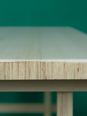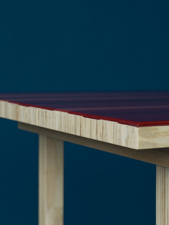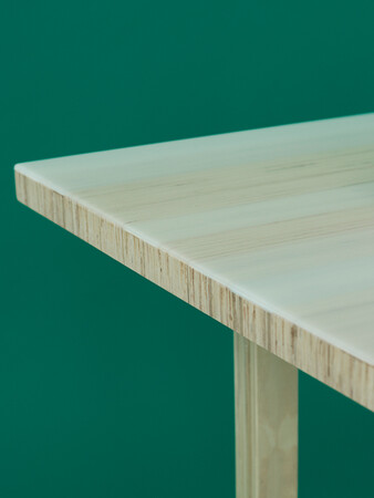 厚みの異なるLVLの角材を並べて天板に凹凸をつくり、そこにエポキシ樹脂を流してボーダー状の模様を出した“raftered” は、プロダクト性とユニークピース性のちょうど狭間にあるような、誰しもが手に入れることができながらも、その表情は一点一点異なり、誰しもが愛着を持てるテーブルです。