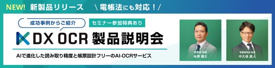 リリースを記念して、AIで進化した読取り精度と帳票設計フリーのAI-OCRサービス「DX OCR」の実際の事例を交えた、製品セミナーを開催いたします。