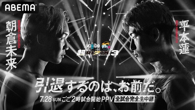 新しい未来のテレビ「ABEMA(アベマ)」は、日本最高峰の格闘技イベントRIZINが2024年7月28日(日)にさいたまスーパーアリーナにて開催する『Yogibo presents 超RIZIN.3』(以下、『超RIZIN.3』)を、「ABEMA PPV ONLINE LIVE(アベマ ペイパービューオンラインライブ)」にて全試合生中継することを決定いたしました。また、本大会の視聴チケットを本日6月28日(月)18時より販売開始いたします。
