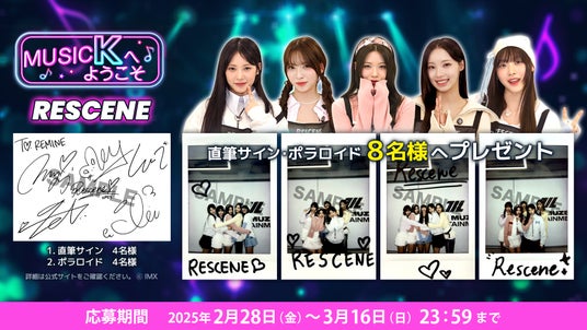 「Music Kへようこそ!」最新話更新を記念して、RESCENEの直筆サインとポラロイドが抽選で8名様に当たる豪華プレゼント企画を本日18時より実施。Music Kの公式X、および公式サイトをご確認のうえ詳細をお待ちください。
